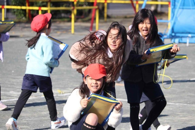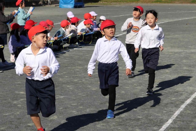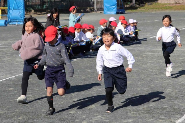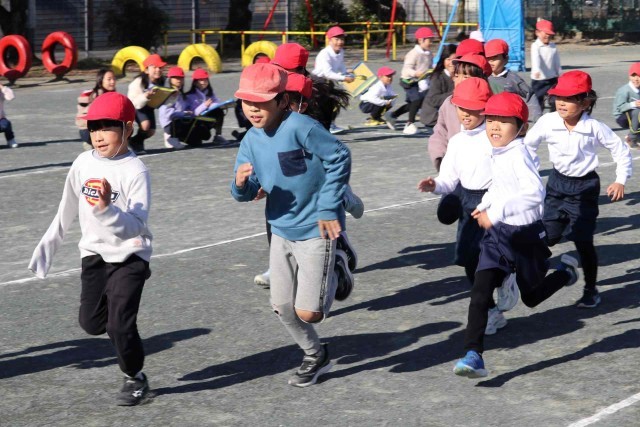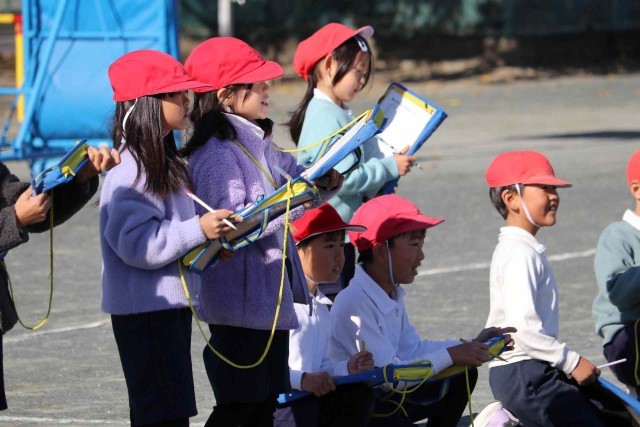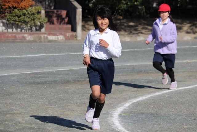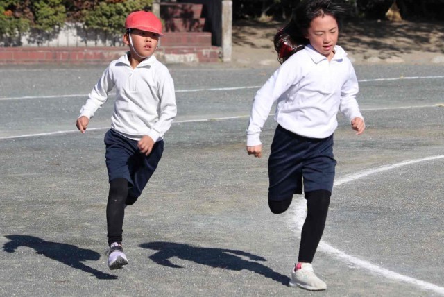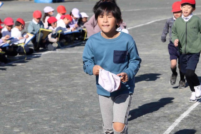 来月のマラソン大会に向けて、トラック6周のタイムを計測しました。走っているペアの子へ「がんばれー」と大きな声援が送られていました。みんな去年よりも速く走れるようになりました。