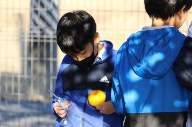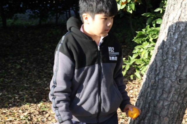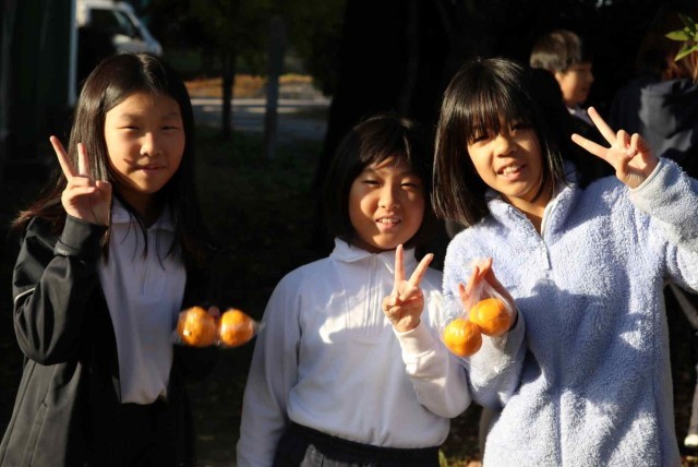 5年生がみかん狩りをしました。どれが美味しそうか、友達とわいわい言いながら選んでいました。毎年たくさんの実をつけてくれるミカンの木に感謝したいです。