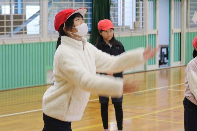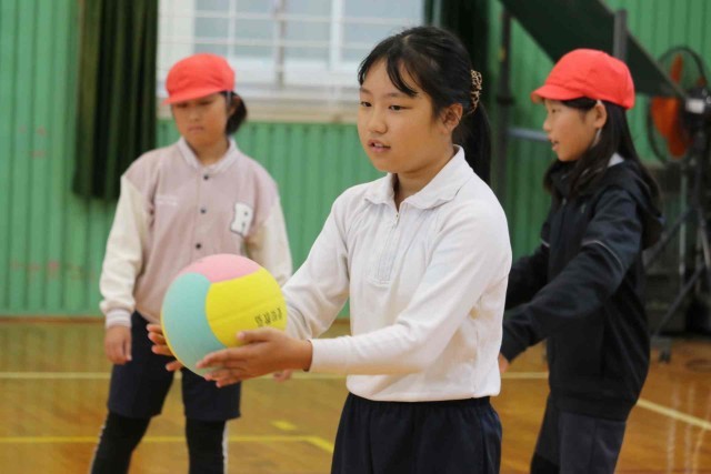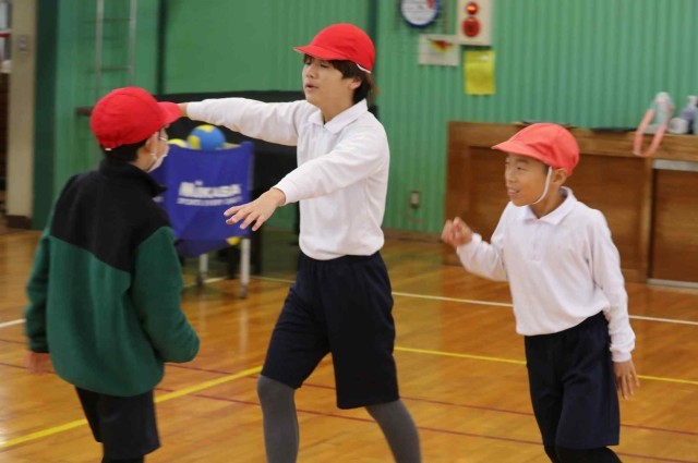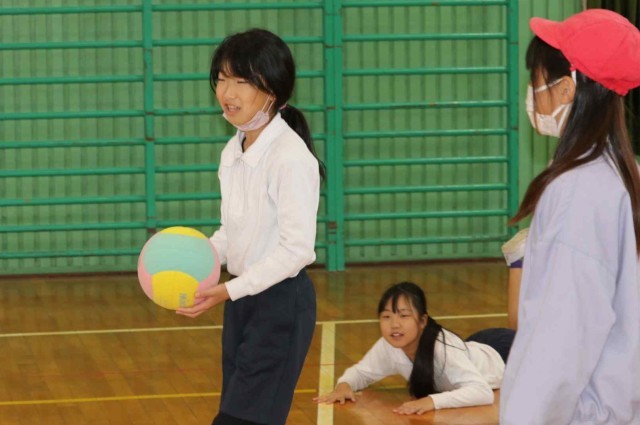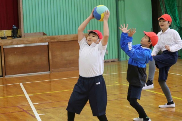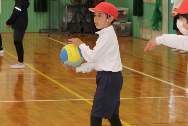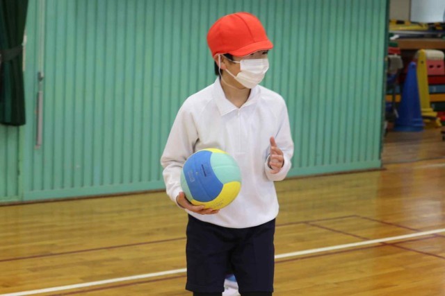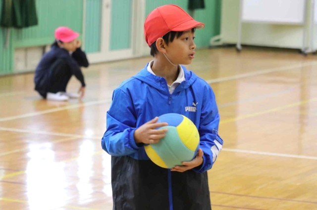 体育の授業でバレーボールの学習をしました。当たっても痛くないやわらかいボールを使って対戦型のゲームをしました。味方のコートにボールが落ちないように、全力でボールを追っていました。