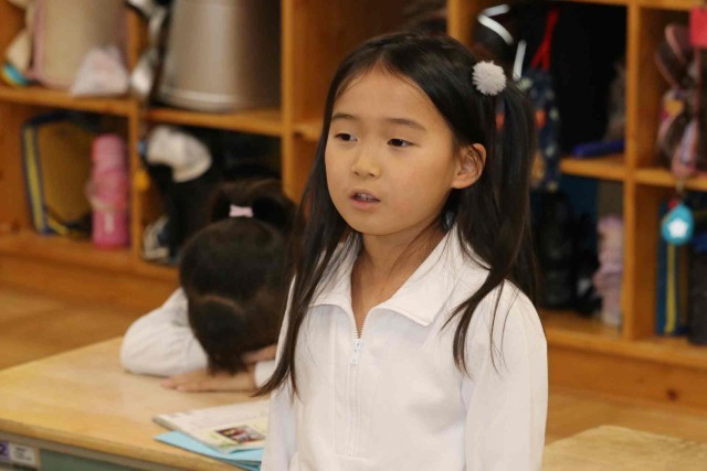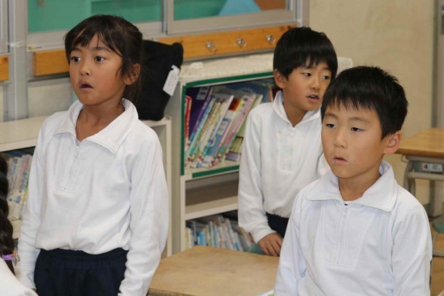 音楽の授業で歌唱の学習をしました。星空の様子を思い浮かべながら、「きらきら星」を歌いました。学級を半分に分けて、お互いの歌声がどうだったのか感想を伝え合っていました。