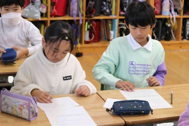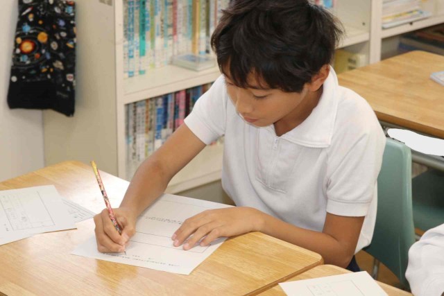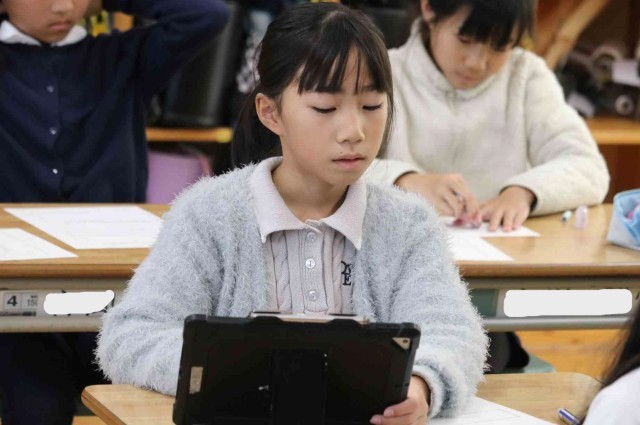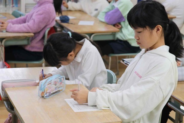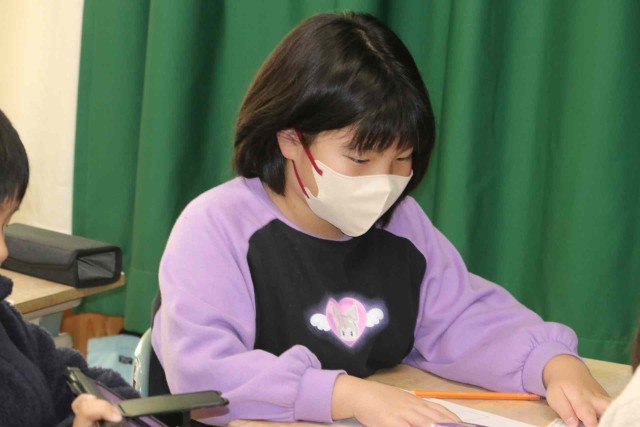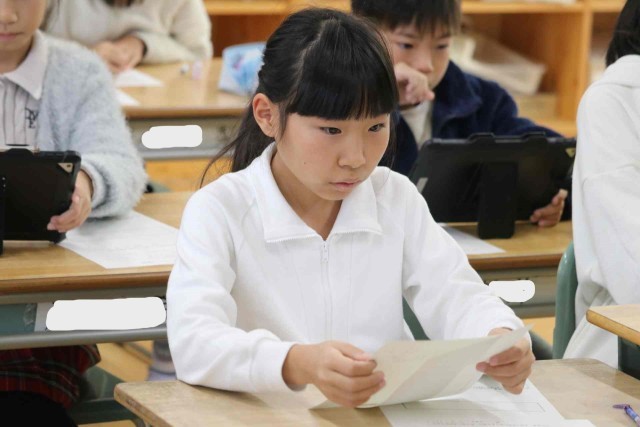 国語の授業で標語作りをしました。人権を大切にする気持ちを込めた標語と、いじめをなくす意思を伝える標語の2つを考えました。インターネットの記事を参考にして、自分の言葉に直していました。
