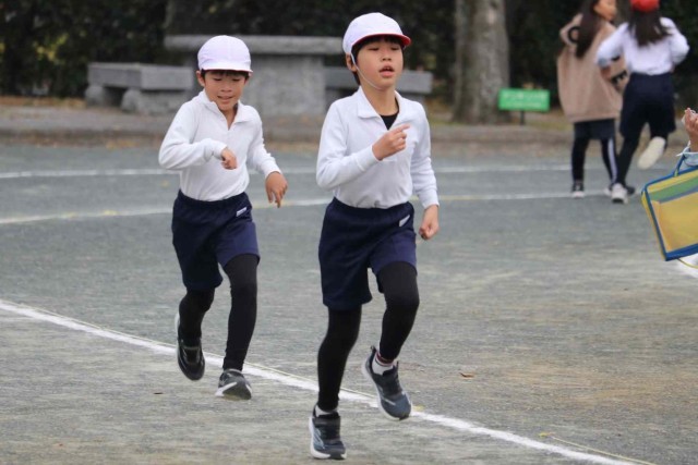 体育の授業で長距離走をしました。先月から走り込みをしてきたおかげで、3年生みんな速く走れるようになりました。明日のマラソン大会では、自分の力を出し切ってほしいと思います。