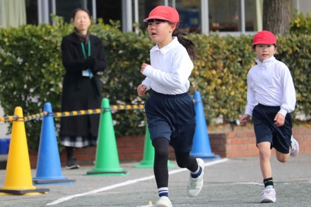2年生が元気よく走りました。去年と同じコースで慣れているため、かなり速いスピードで走っていました。ライバルに負けたくないと、歯をくいしばって走り切ることができました。