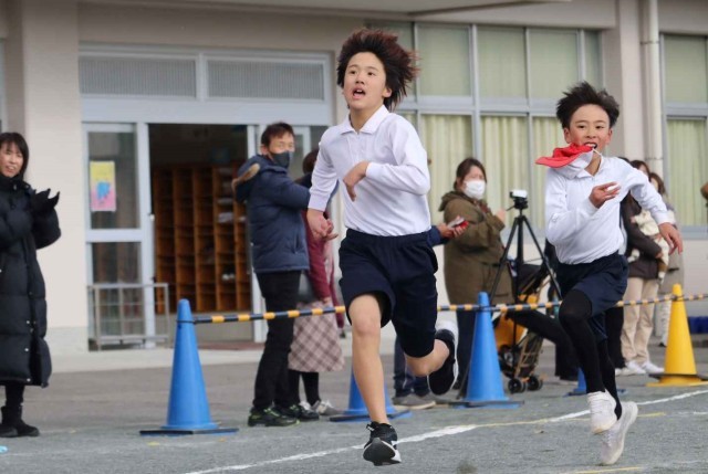 5年生男子のトップ争いは最後までどちらが勝つか分からないすばらしいレースになりました。いつも全力投球の5年生らしく、みんな必死の表情でゴールをめざす姿が印象的でした。
