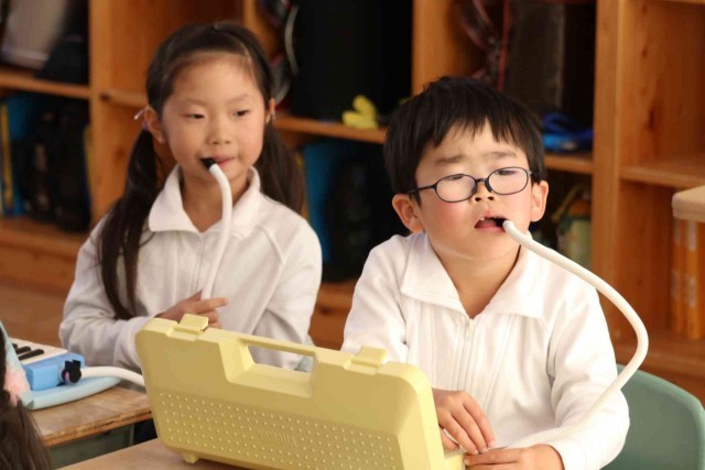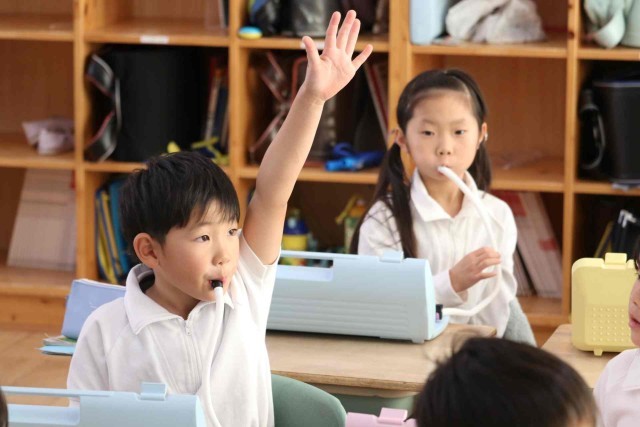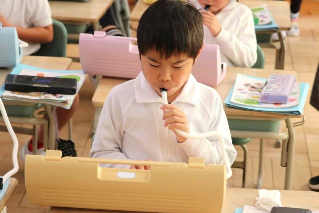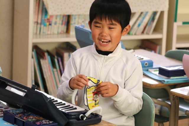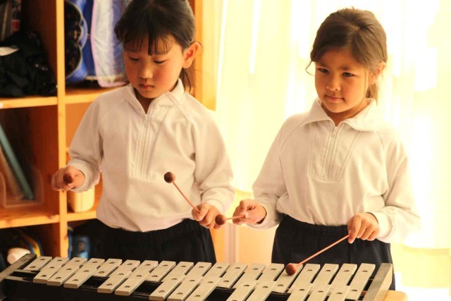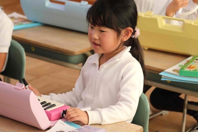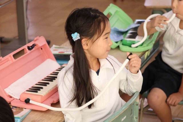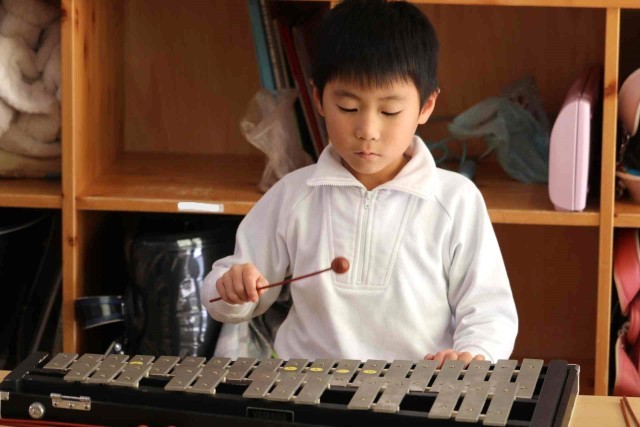 音楽の授業できらきら星の演奏をしました。音楽室から鉄琴を運んできて、教室で演奏しました。今日は声を出して歌う子も決めて、鉄琴やピアニカとのハーモニーを楽しんでいました。