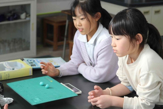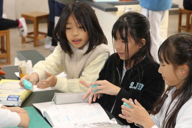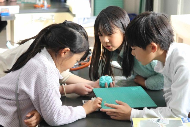理科の授業で重さの学習をしました。粘土やアルミホイルの形を変えると、重さも変わるのか確かめました。いろいろな形に変えても、重さは変わらないことが分かりました。