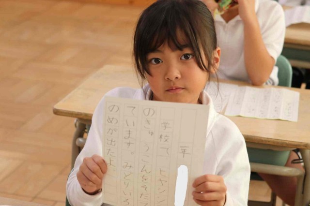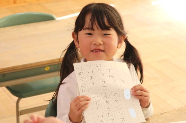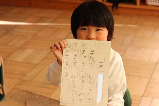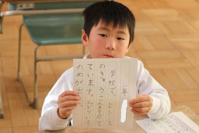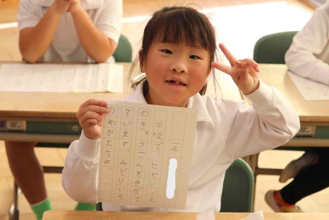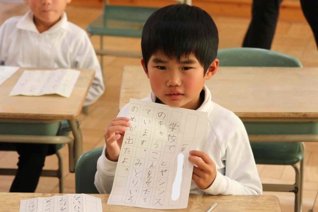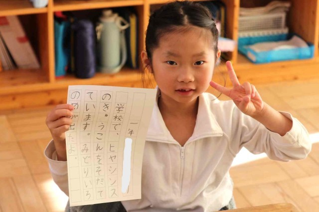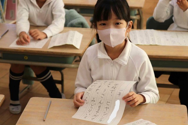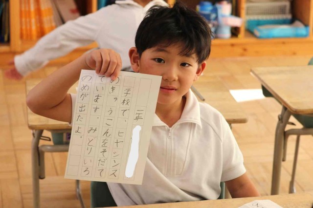 書写の授業で書き初めをしました。鉛筆をしっかりと握って、一文字ずつていねいに書いていました。みんなとてもきれいな字を書くことができました。