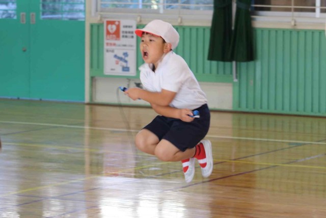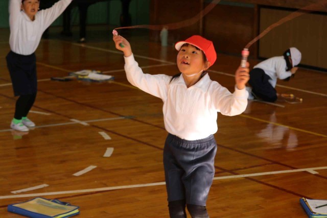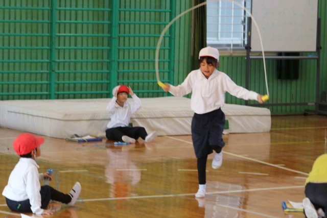 体育の授業で縄跳びをしました。何回も続けて連続跳びができるようになりました。あや跳びのコツは腕を大きく開いたり閉じたりすることだと聞くと、実際に跳べた子がたくさんいました。