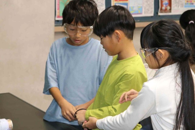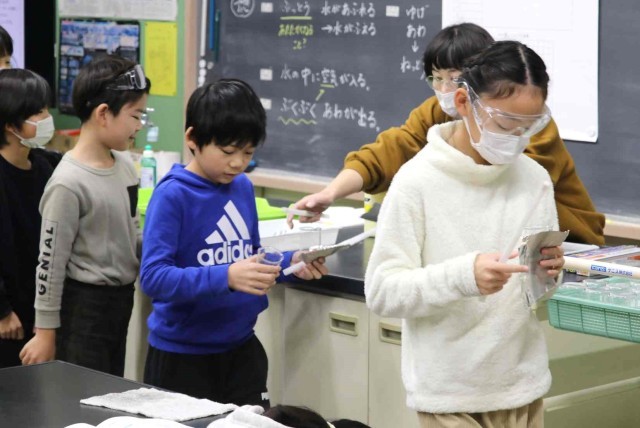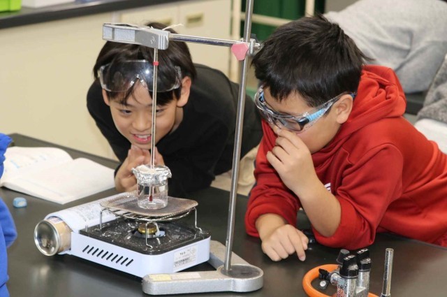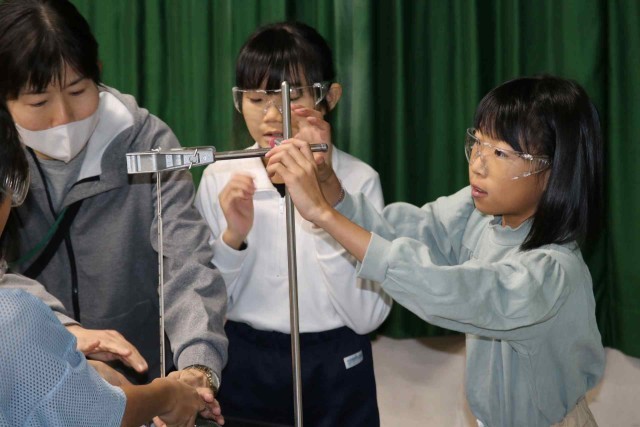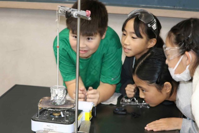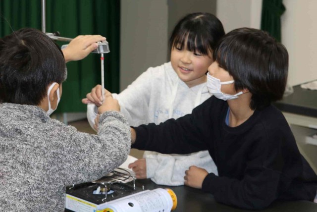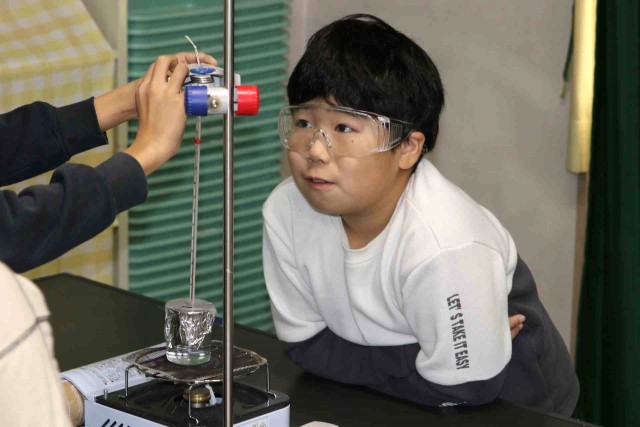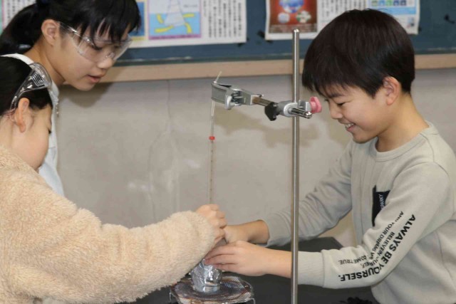 理科の授業で水を温める実験をしました。ビーカーに入れた水をガスコンロで温めていきました。温度計を見ながら、沸騰していく様子をじっくりと観察しました。