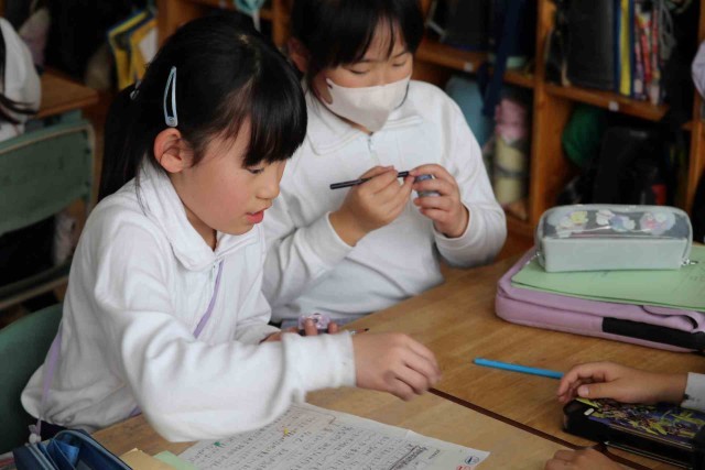 総合学習で梨づくりの追究活動をしました。梨について聞きたいことを梨農家の方にインタビューしました。いろいろ教えてもらったことを、原稿にまとめていました。