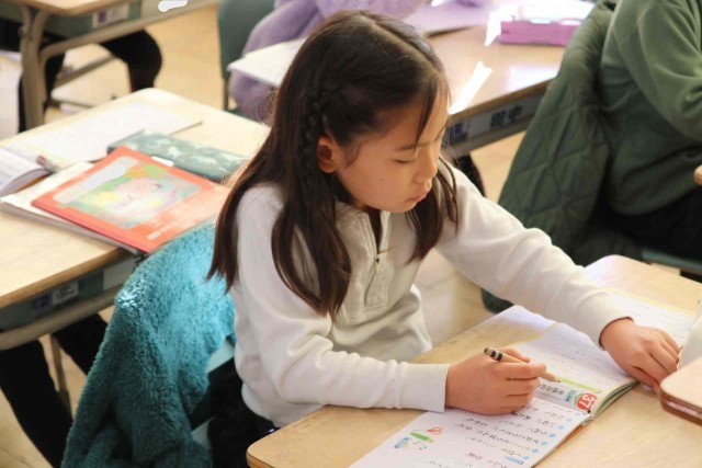 国語の授業で2学期に学んだ漢字を復習しました。すらすらと漢字ドリルに書ける子もいれば、鉛筆を動かさず頭の中で漢字を思い浮かべている子もいました。忘れた漢字は冬休み中に覚え直しましょう。