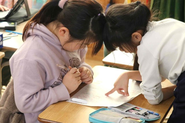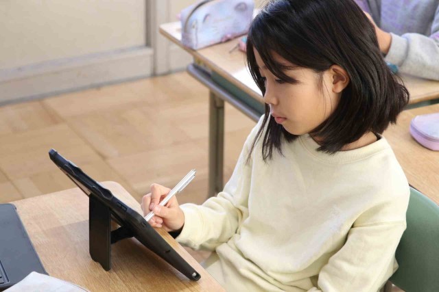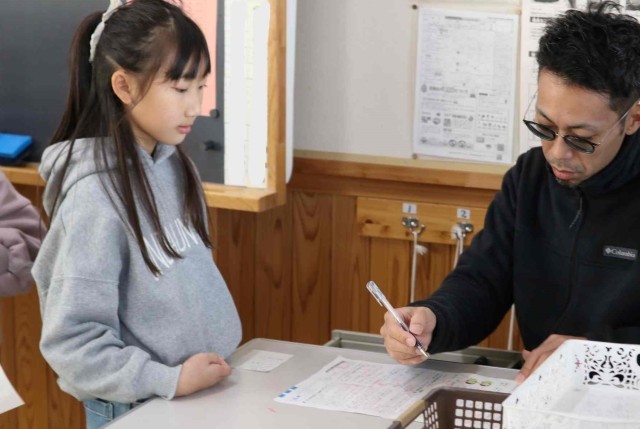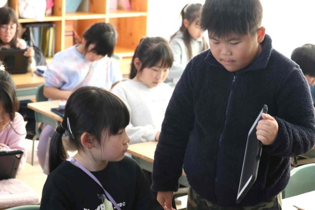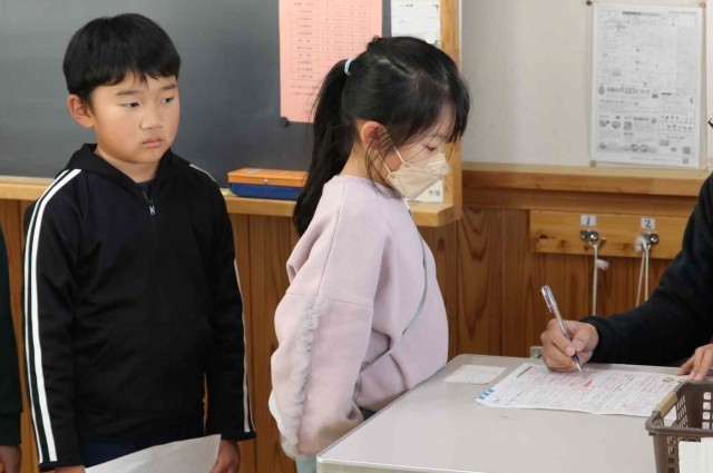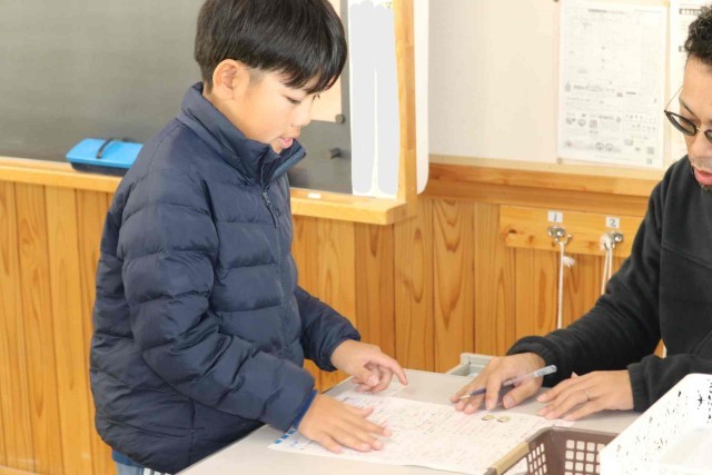 国語の授業でテストの返却をしました。不正解のところを見直して、先生のチェックを受けました。分からないところは近くの友達に教えてもらっていました。