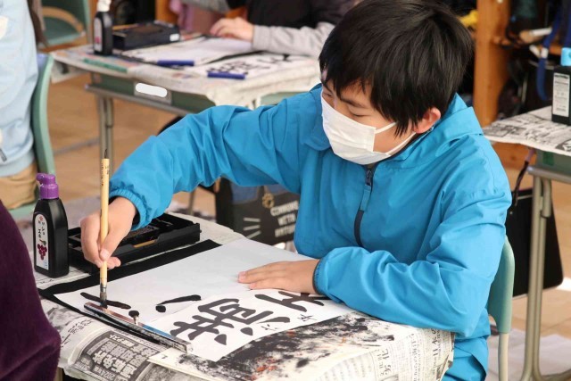 6年生は「満天の星」と書き上げました。画数の多い漢字でも上手に筆を動かしていました。小学校での書き初めは最後になりましたが、大人になっても字をていねいに書くことを大切にしてほしいです。