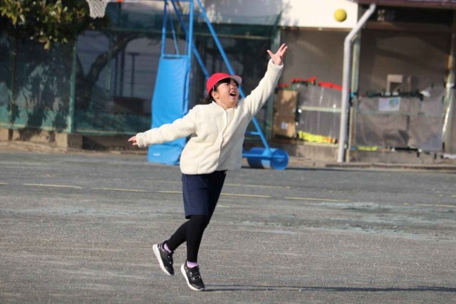体育の授業でティーボールの学習をしました。今日は守備の練習として、捕球の上達をめざしました。友達に投げてもらったボールを手できちんと受け止められる子が増えてきました。