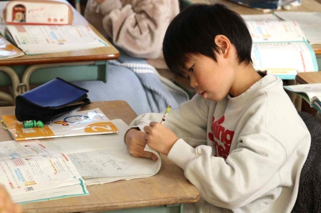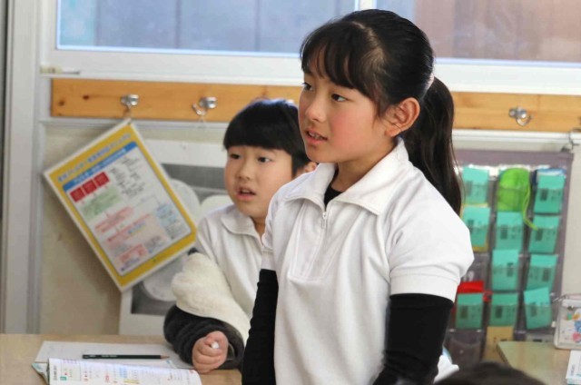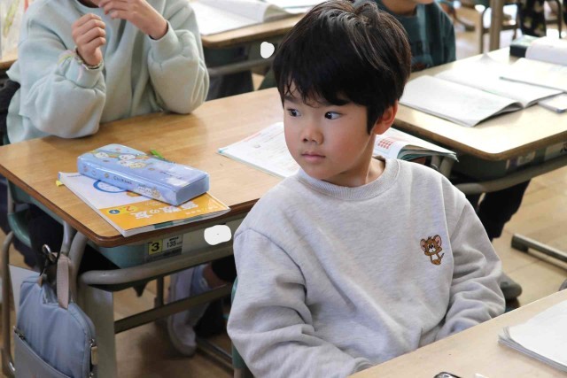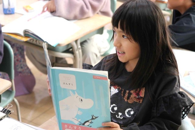 算数の授業でかけ算の学習をしました。「4×3=12」は覚えましたが、「4×12」のようなかけ算がどうなるか考えました。10の位と1の位に数字を分けて考えたり、12をひとつの数字として4倍したりするなどいろいろな考えがありました。