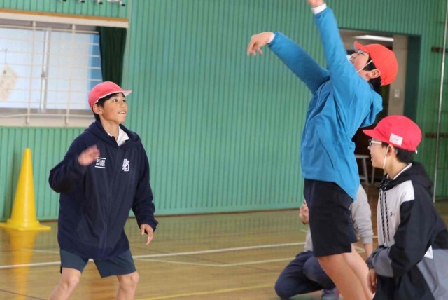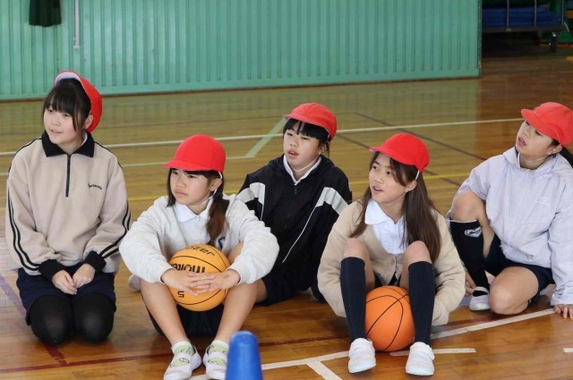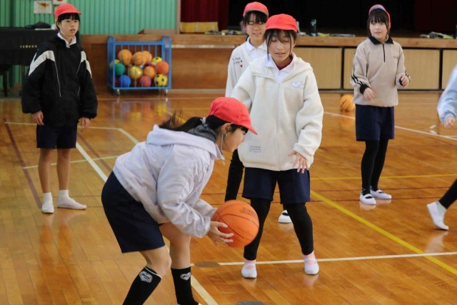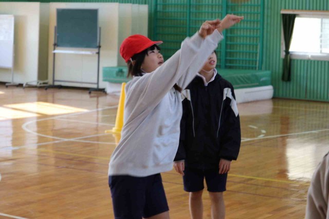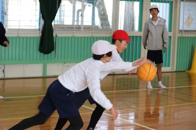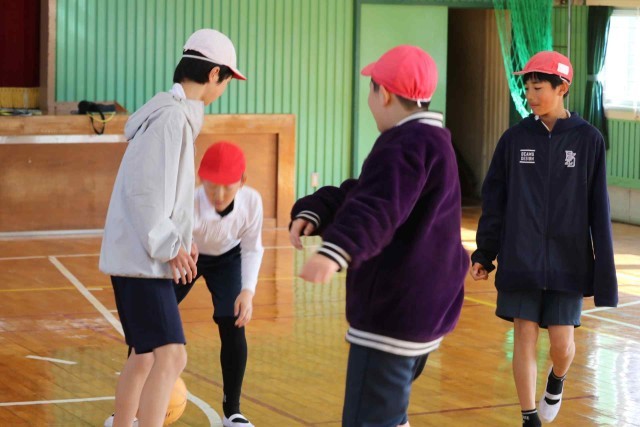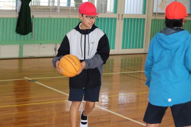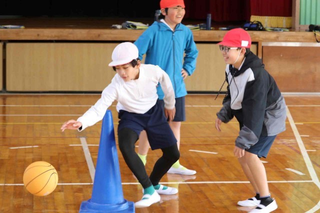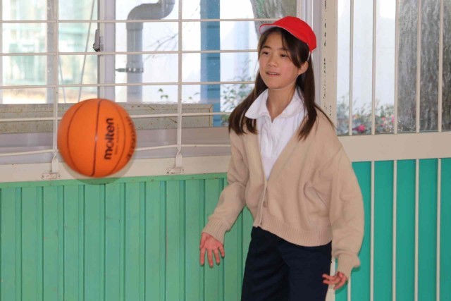 体育の授業でバスケットボールの学習をしました。チームメイトとパスを回しながら最後にシュートを打つ練習をしました。ゴールが決まるとはじけるような笑顔になっていました。