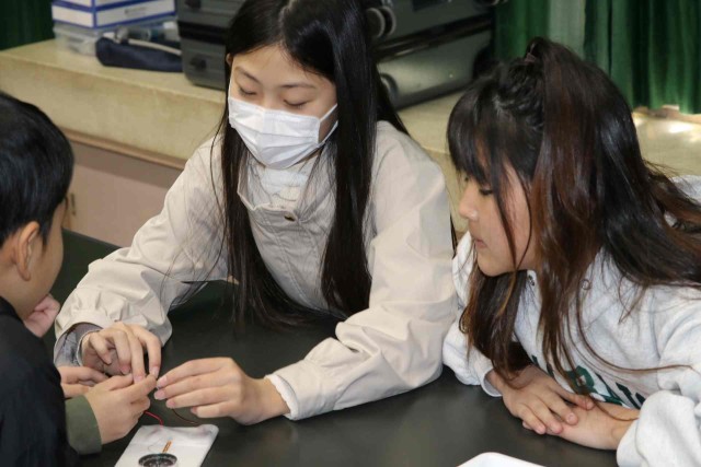 デンソーの講師の方に楽しい実験をさせていただきました。電磁石やモーターの仕組みや、生活の中で様々に使われていることを学びました。理科のことがとても好きになったと感想を述べた子がいました。