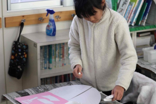図工の授業で紙粘土を使った工作をしました。おすすめの本の一場面を立体的に表現しました。今後、本の面白さを伝え合うビブリオバトルで使用する予定です。