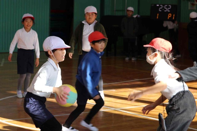 体育の授業でポートボールをしました。チームごとの練習の後、3分間の試合をしました。シュートがよく決まるようになり、スピード感のあるゲームがくり広げられました。