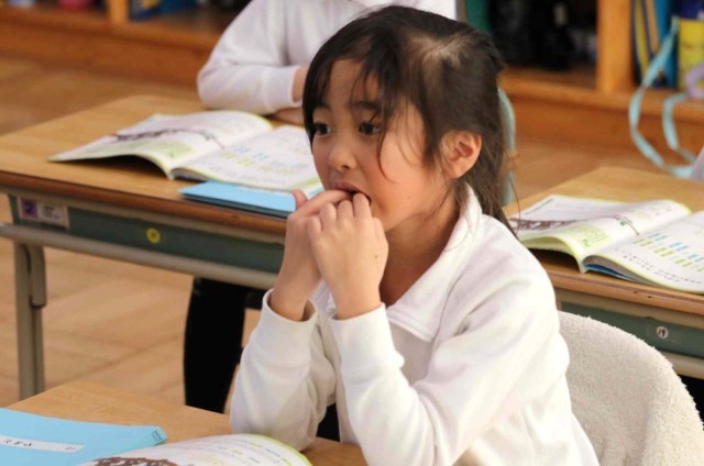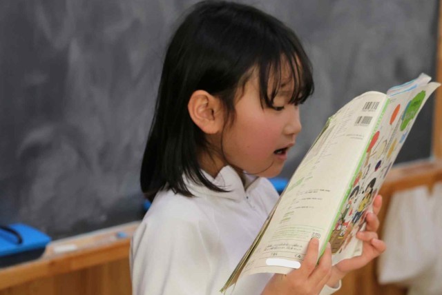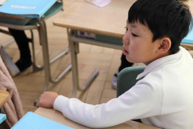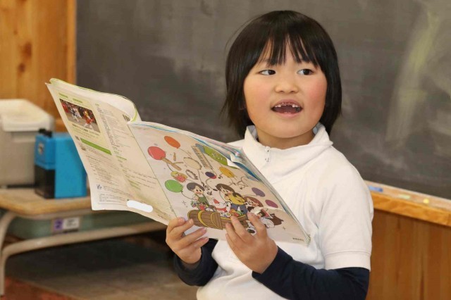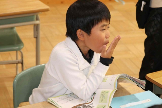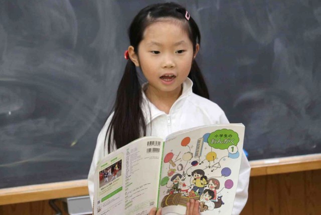 音楽の授業で「あいあい」の学習をしました。黒板の前で一人ずつ歌うと、その歌声に合わせてクラス全員で元気よく「あーいあい」と声を合わせました。お互いの声をよく聞きながら歌うことができました。