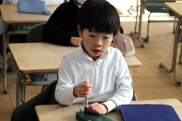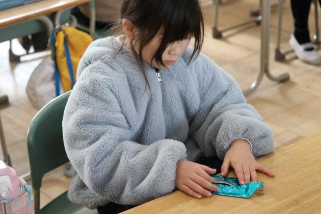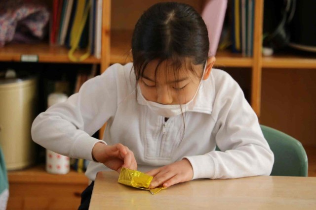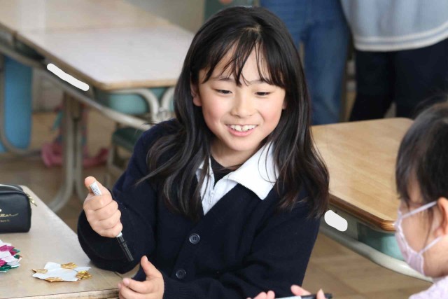 生活科の授業でお世話になった人に贈るメダルを作りました。折り紙でメダルを作る子、首にかけるひもを作る子など役割分担をして作業を進めました。完成したメダルは「感謝の会」でお渡しします。