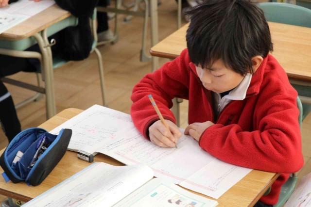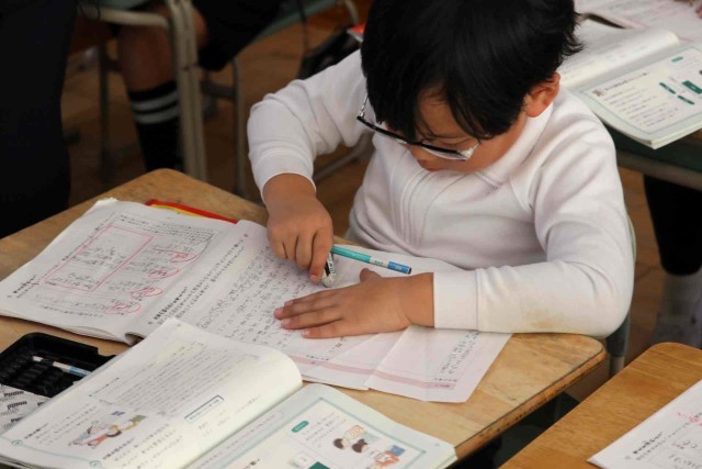 国語の授業で作文の学習をしました。「クラスの思い出作り」をテーマにして、自分の考えをまとめました。おにごっこやドッジボールなど、自分がやりたいことを周りの子に伝えるにはどうすればよいか考えていました。