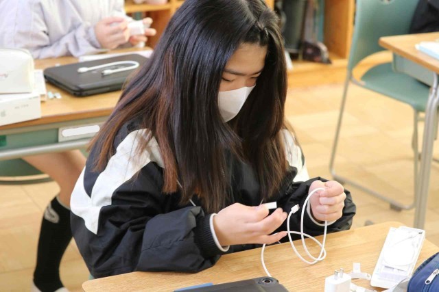 6年生が新しいタブレットを使う準備をしました。高価なものだと分かっているので、慎重に取り扱っていました。先生の指示を聞きながら、学習に使う準備を整えることができました。