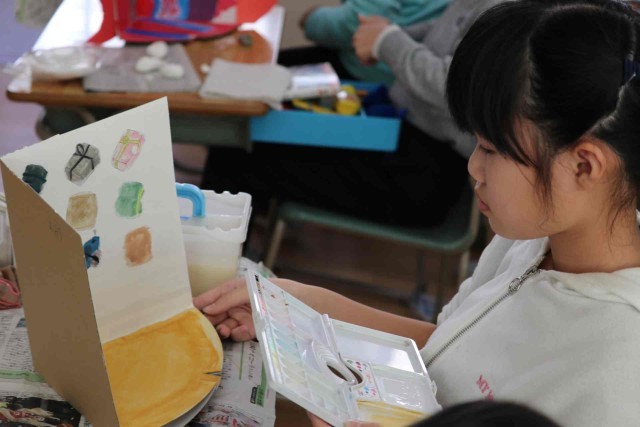 図工の授業でビブリオバトルのためのジオラマ作りをしました。印象に残る場面を絵や紙粘土で表しました。ほぼ完成に近づいてきており、ビブリオバトルで使用される日も近いと感じます。