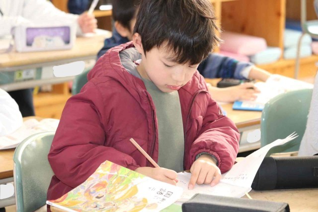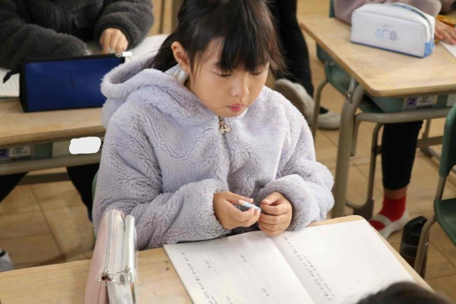 国語の授業で説明文を書く学習をしました。大きな音を出す楽器をテーマにしたとき、どんな楽器について伝えるか考えました。鉄琴、木琴、大太鼓、シンバルなどの意見が出ていました。