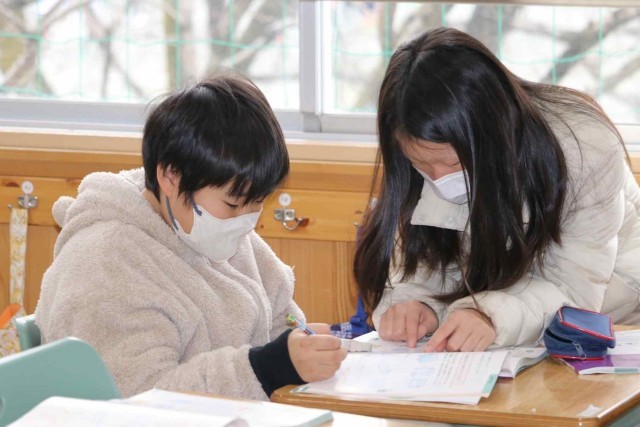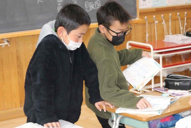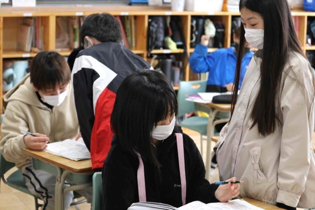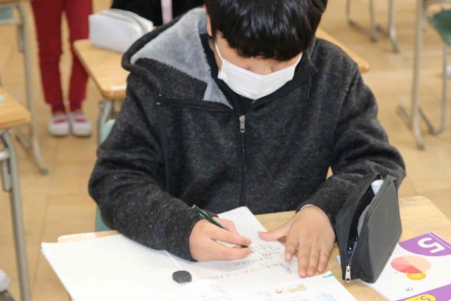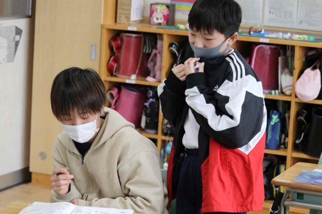 算数の授業で立体の学習をしました。円柱や直方体などの体積を計算できるようになりました。練習問題に進んで取り組み、友達同士で学び合っていました。