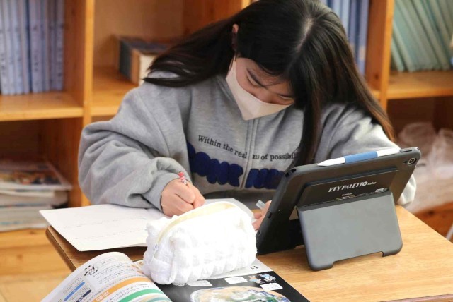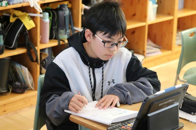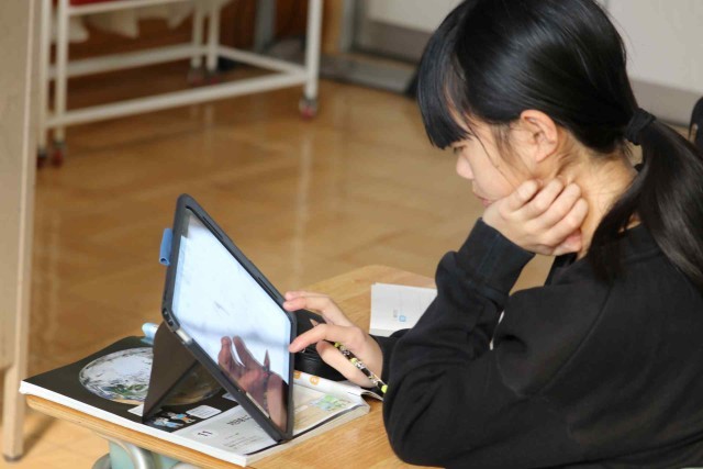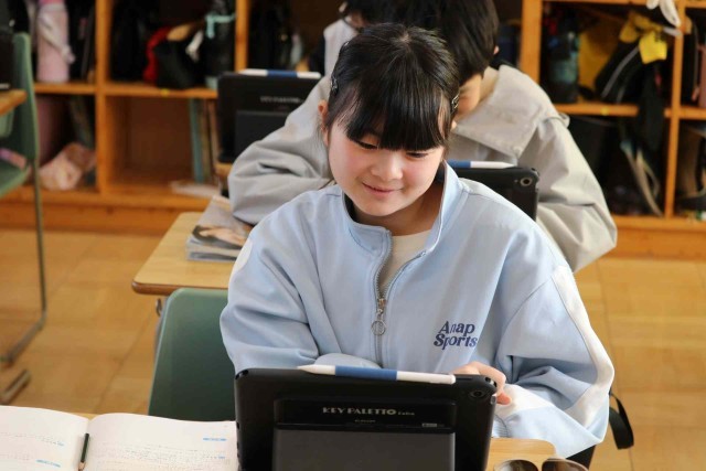 理科の授業で地球の環境について学習しました。人々が暮らしの中でどのように環境と関わっているのかを考えて意見交換しました。自然と共生できる社会を作ることが大切だと分かりました。