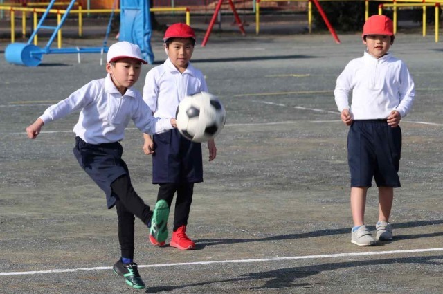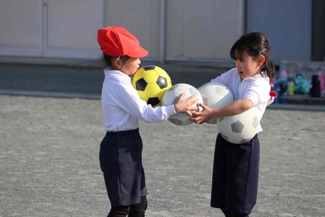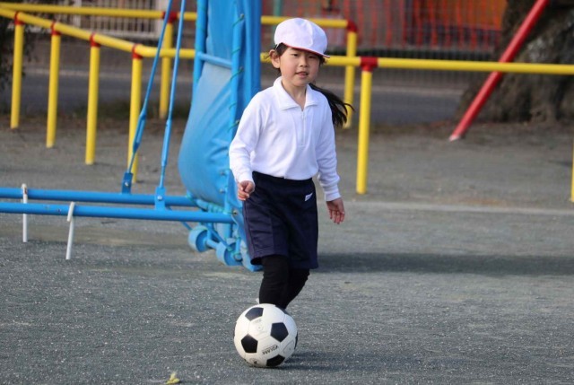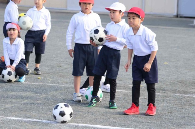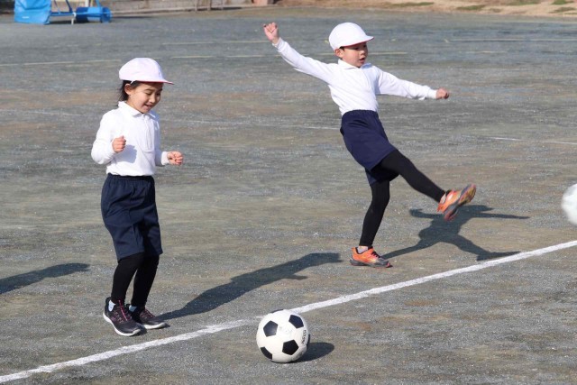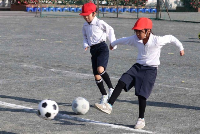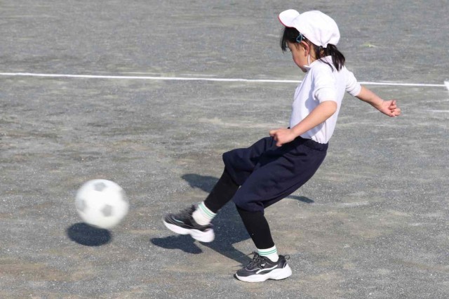 体育の授業でサッカーの学習をしました。キーパー役の子にシュートを止められないように、よいキックをすることができました。単元の初めに比べて、みんなボールの扱いがとても上手になりました。