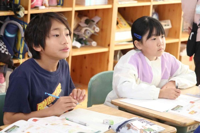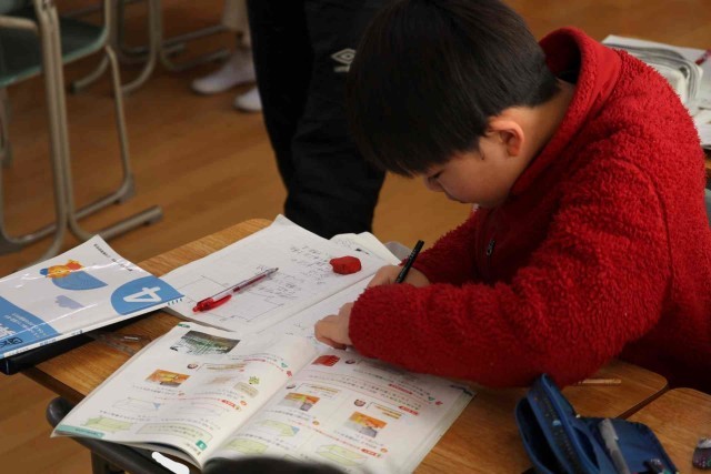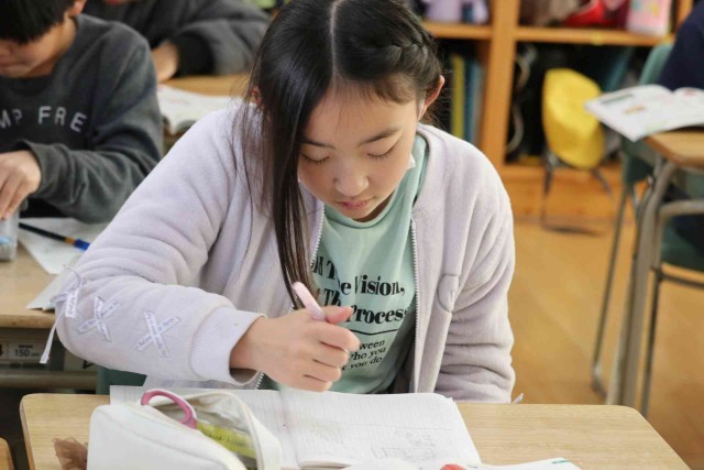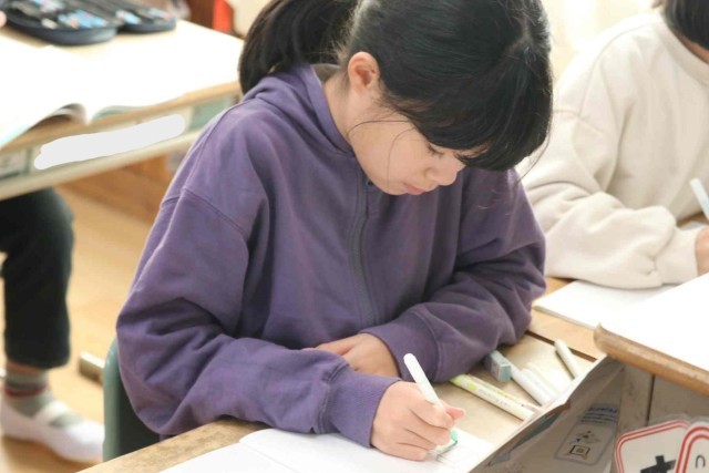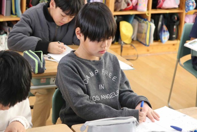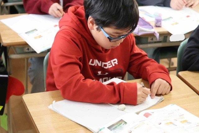 算数の授業で直方体や立方体の学習をしました。向かい合う面や、となり合う面の関係を透視図で理解しました。定規を使って立体的に図形を描く練習も行いました。