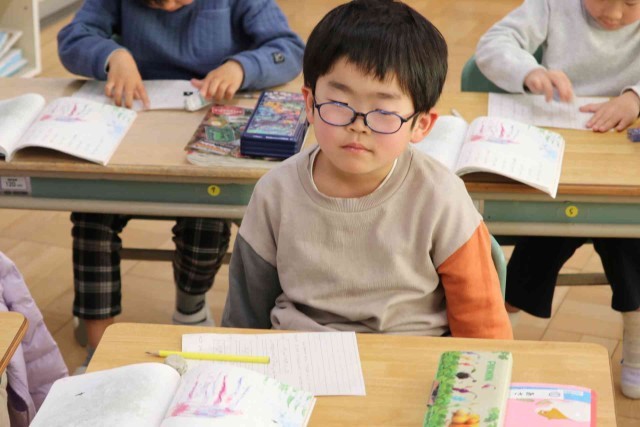 国語の授業でスイミーのお話を読みました。暗い海の底をひとりぼっちで泳ぐスイミーの気持ちを想像しました。「さみしかった」「こわかった」「とてもかなしかった」などの意見が出ました。