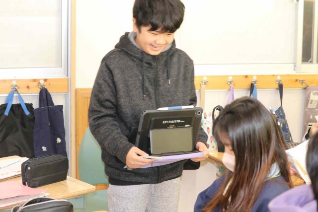 外国語の授業で「あこがれの人」を紹介する学習をしました。スポーツで活躍する選手、芸能界のアイドルなど、自分があこがれる人について英語で伝えることができました。