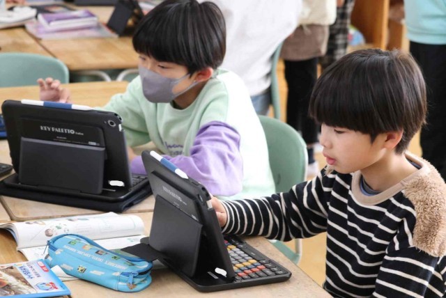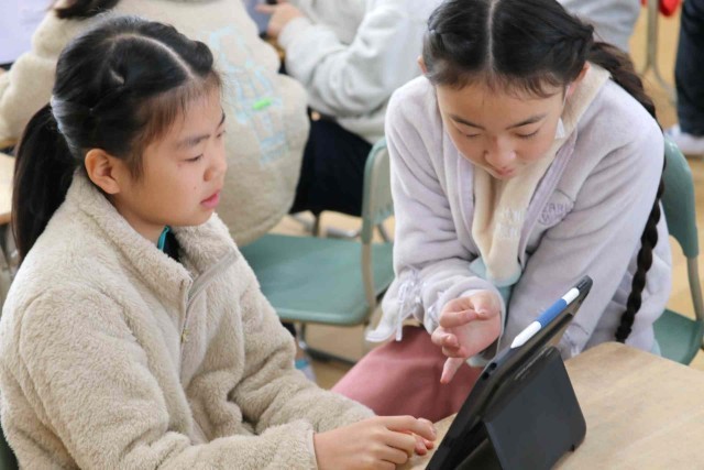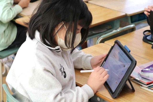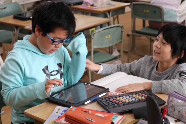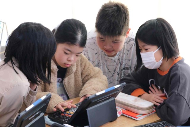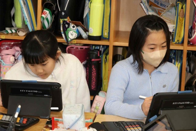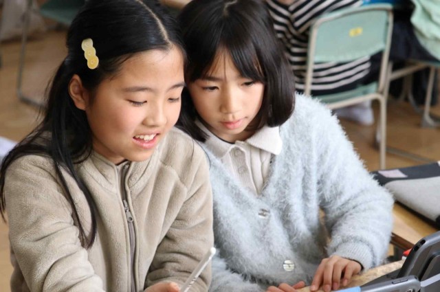 国語の授業でアンケートを作って意見をまとめ、報告する学習をしました。グループごとにアンケート内容を決め、先生のチェックを受けていました。準備ができたところから、実際にアンケートを行っていきます。