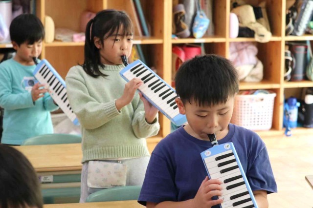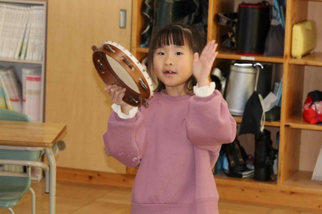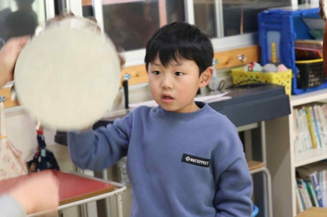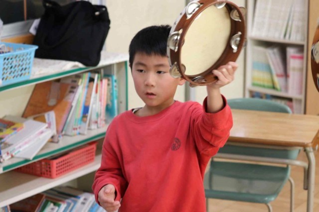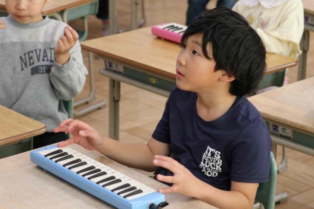 学習発表会に向けて、きらきら星の練習をしました。タンバリン、ピアニカ、カスタネットのパートに分かれて演奏を楽しみました。演奏の終わり頃にテンポが速くなったことを担任の先生から指摘されていました。