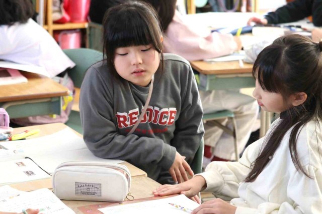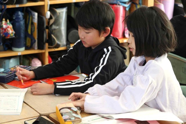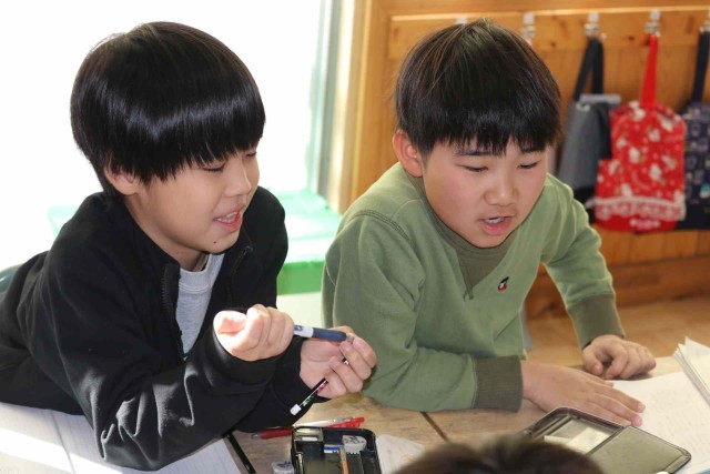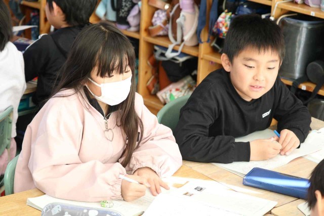 国語の授業で説明文の学習をしました。身の回りにある道具がどのように変化したかを説明する文章を考えました。グループごとにどんな道具にするか話し合い、「お風呂」「トイレ」などの意見が出ました。