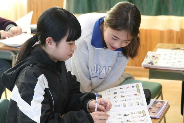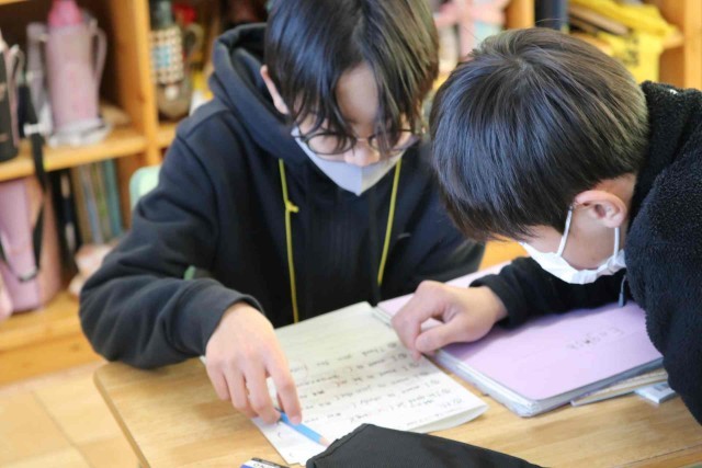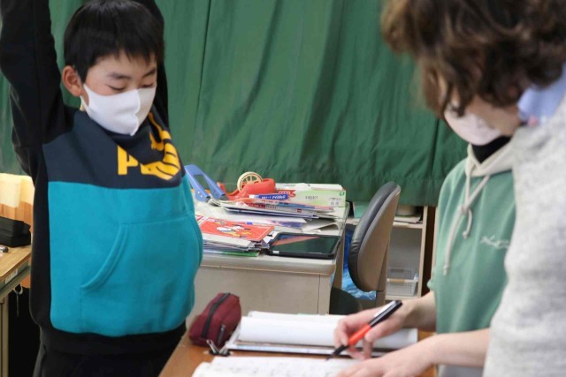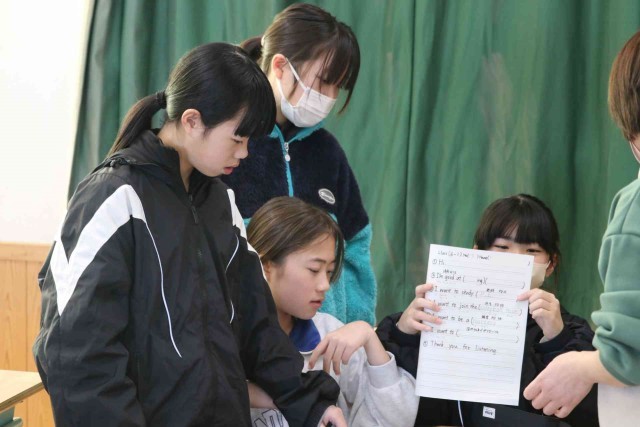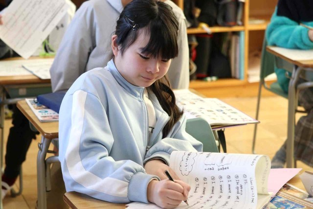外国語の授業で中学校生活への抱負や将来の夢について英語で伝える学習をしました。野球の選手など具体的な職業を挙げる子もいれば、優しい人になりたい、困っている人を助ける人になりたいなどと話す子もいました。