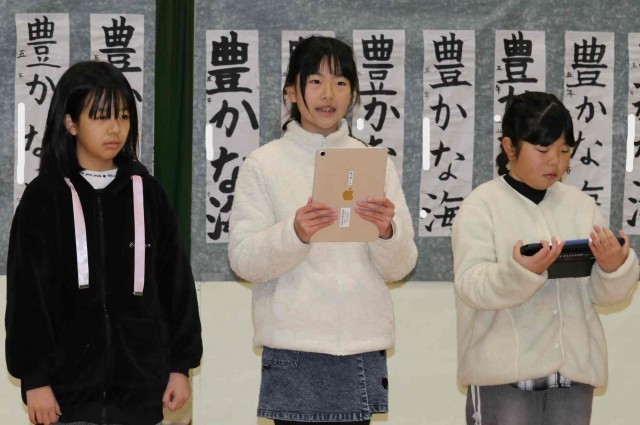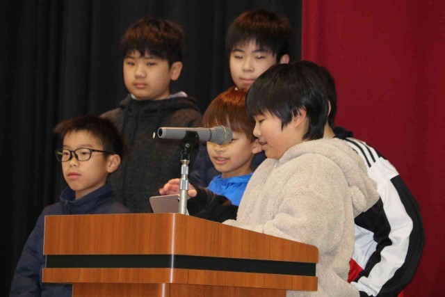 1年を通して取り組んできたお米作りや、「和食」というテーマで追究したことを発表しました。スライドショーや寸劇を交えながら、明るく元気に発表することができました。田んぼボランティアの方にもたくさんお越しいただき、成長した姿を見守っていただきました。