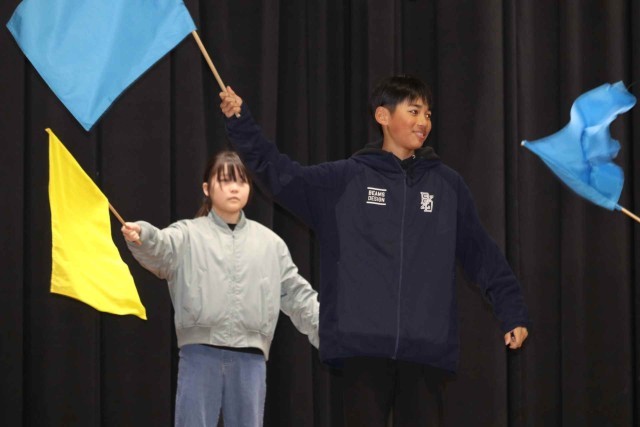 自分たちで作り上げた運動会のフラッグ演技について、短い劇にしてお家の方に見てもらいました。悩んだことや乗り越えたことなど、自分たちの経験が語られていました。最後にクラス全員で合唱をし、小学校生活を締めくくる思い出になりました。