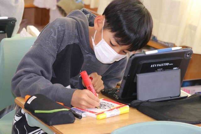 図工の授業で木工の学習をしました。木箱のふたや側面に色を塗ったり、立体的な形を彫ったりしました。どの作品にも個性があり、とてもすてきな出来上がりでした。
