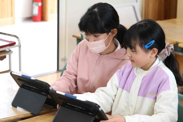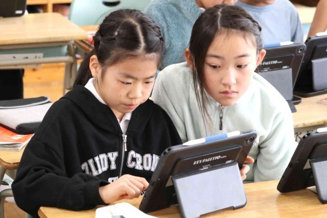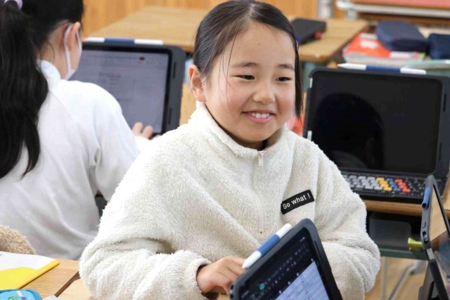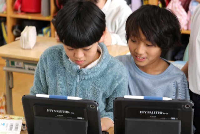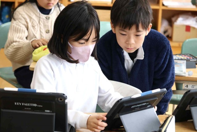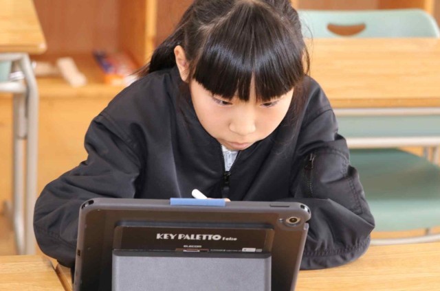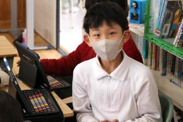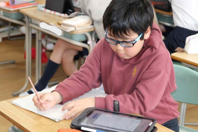 国語の授業で調べたことを報告する学習をしました。アンケートを作成して結果を集計し、分析する作業をグループごとに行いました。どうすれば相手に分かりやすい説明になるのかをじっくり考えていました。