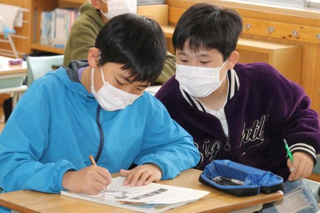 理科の授業で生物と地球環境の関わりについて学習しました。降った雨が海に戻って循環していることや、⽣物が⽔・空気を通して周囲の環境と関わって⽣きていることを学びました。