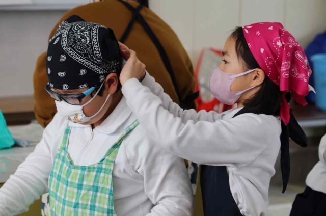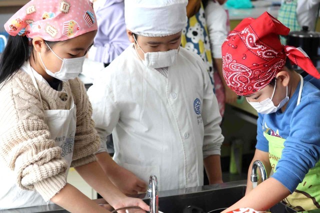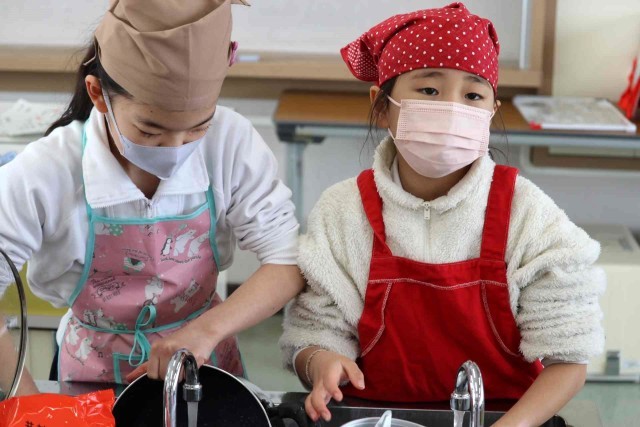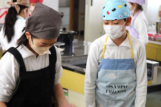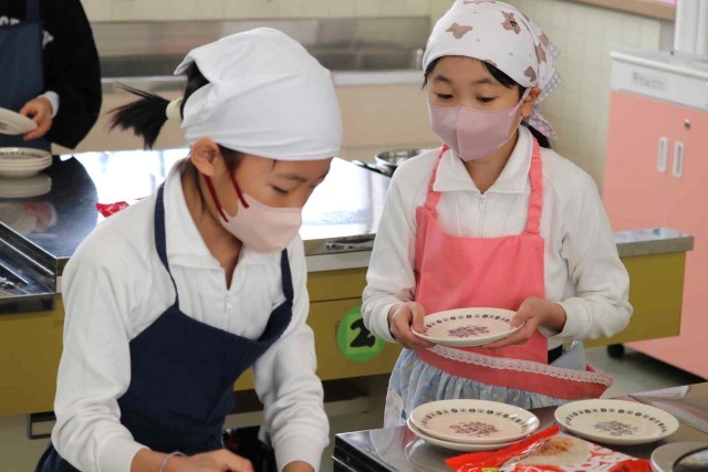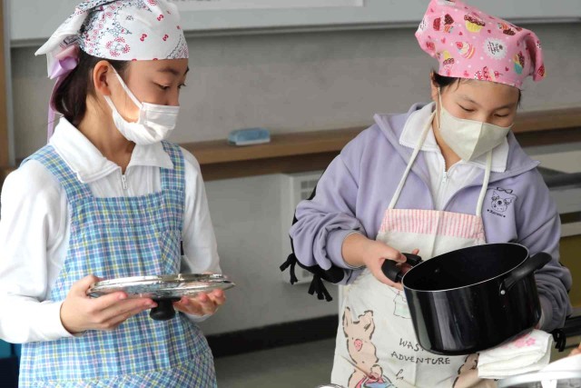 家庭科の授業は5年生から始まりますが、事前に調理実習に慣れるため、調理室の使い方を学習しました。今日は蒸すだけでできる、肉まんとあんまんを作りました。ふっくらとした美味しいものが出来上がりました。