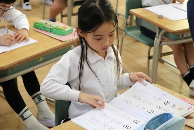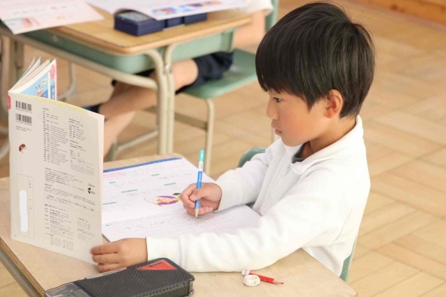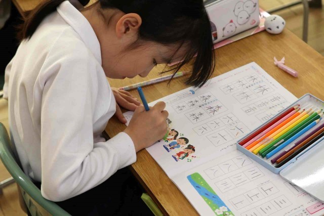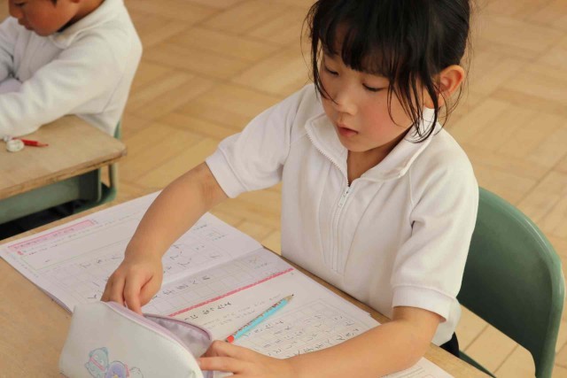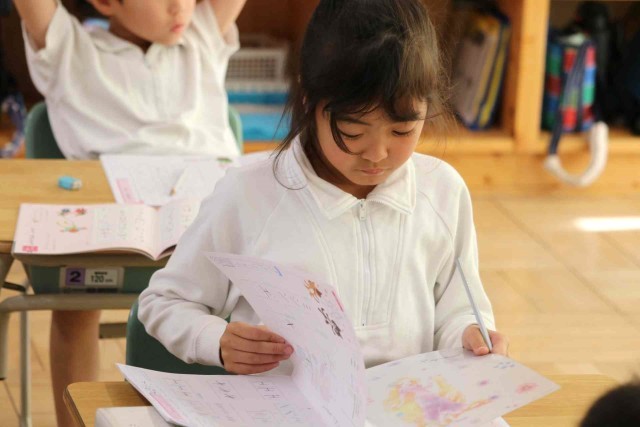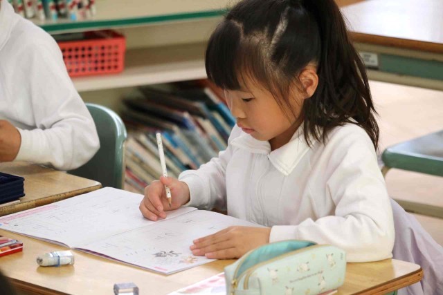 書写の授業で、きれいな文字を書く練習をしました。1年間のまとめとして、漢字やカタカナ、ひらがなをたくさん書きました。書写ノートを最後まで終える子も出てきました。