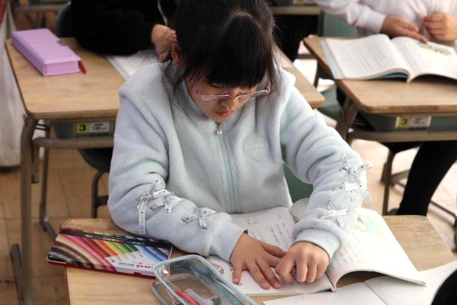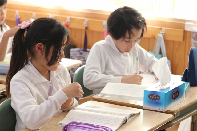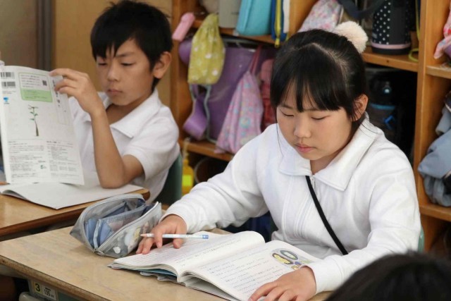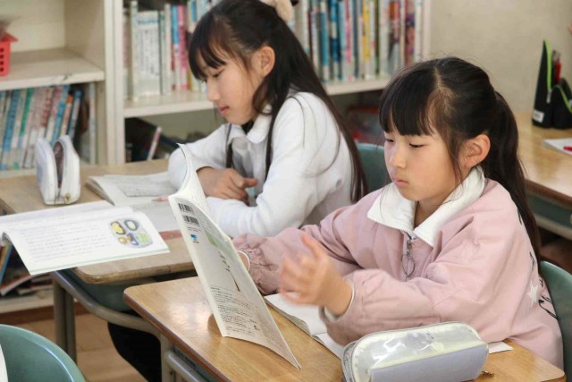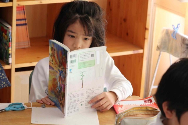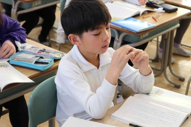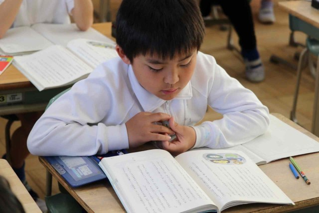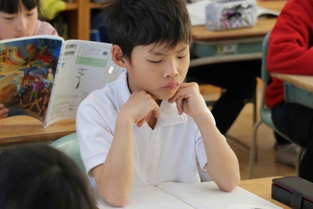 国語の授業で物語を読みました。「ゆうすげ旅館」の1年間を舞台にしたファンタジー作品で、物語の仕掛けがどうなっているのかを考えながら読み進めました。みんな物語の世界に浸っているようでした。