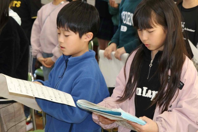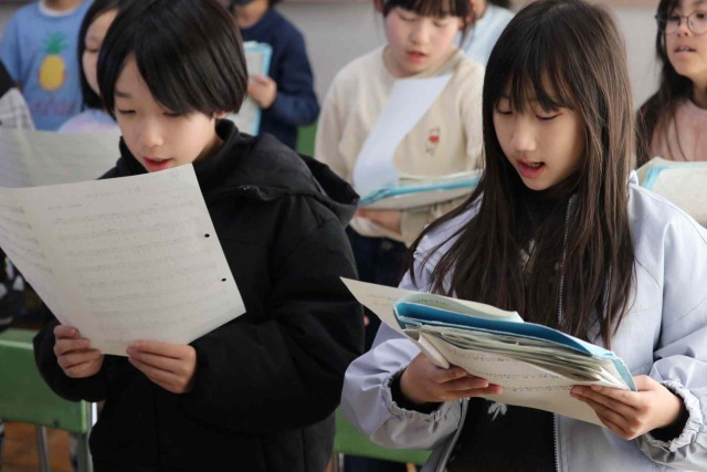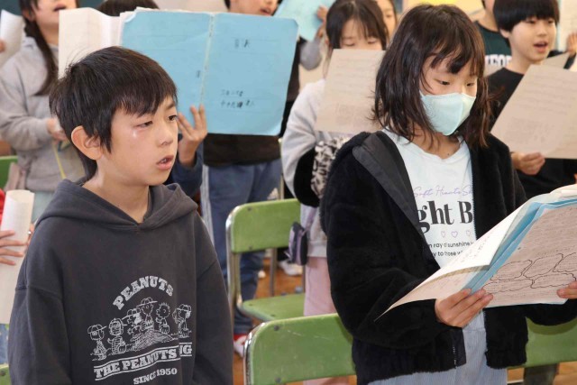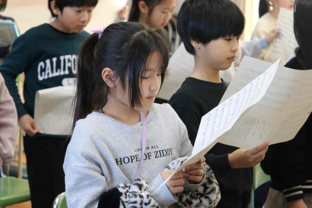 音楽の授業で合唱をしました。来週の「卒業生を送る会」で6年生にプレゼントする歌です。しっかりとお腹から声を出して、きれいな歌声を響かせていました。
