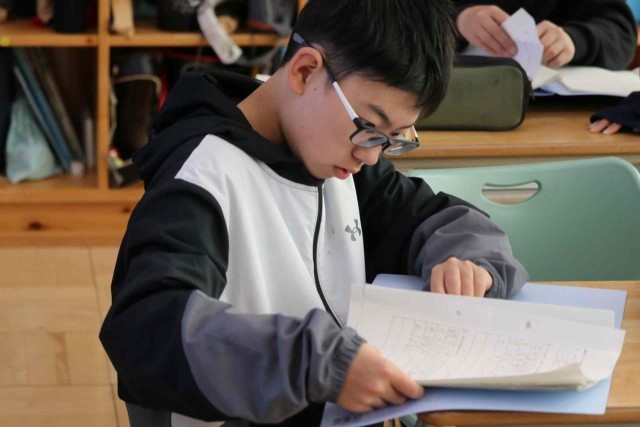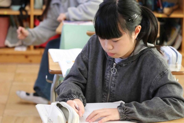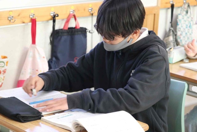 6年生が卒業するまで10日を切りました。在校生や家族、先生たちに感謝する作文を書いた後は、友達と談笑したり身の回りの片づけをしたりしていました。教室中が穏やかな雰囲気に包まれていました。