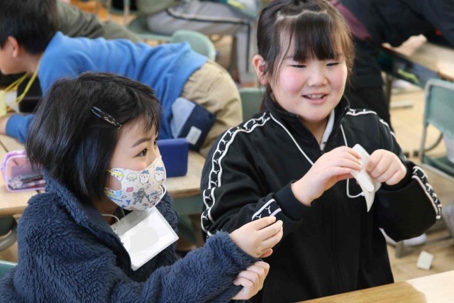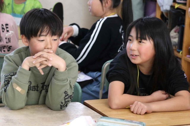 外国語活動で相手の好みを尋ねる英語表現に慣れ親しみました。食べ物、果物、動物など、好きなものを伝えたり尋ねたりしました。耳や目、足など体の部分を表す英単語も教えてもらいました。
